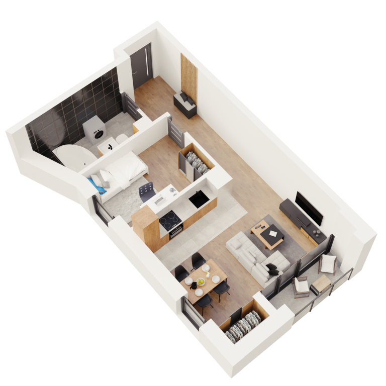 Inwestycja obejmuje funkcjonalne apartamenty o powierzchniach od 27 m² do 66 m², więc łatwo znaleźć swoją wymarzoną przestrzeń, która zapewni maksymalną wygodę codziennego życia.